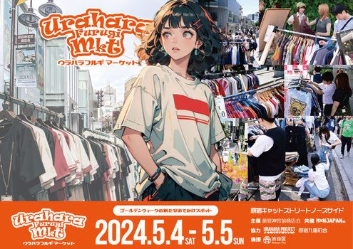 真夏以外はなるべく多く開催したいと思っております「ウラハラフルギマーケット」古着や古着イベントのWEBメディア TOKYO FURUGI MUSEUMさんに御協力頂きまして、毎回約17店舗ほどのフリーマーケットが集い、ウラハラキャットストリートが古着ストリートになる不定期開催のイベントとなっております。都内以外の古着店からの参加も多いので店舗のPRにも使って頂けます。裏原宿という立地もあり人通りは常に多いので大変盛り上がるイベントとなっています。フリーマーケットだけではなく、近隣のショップにもお客様を呼び込めるので商店会としても大変嬉しいイベントとなっております。
